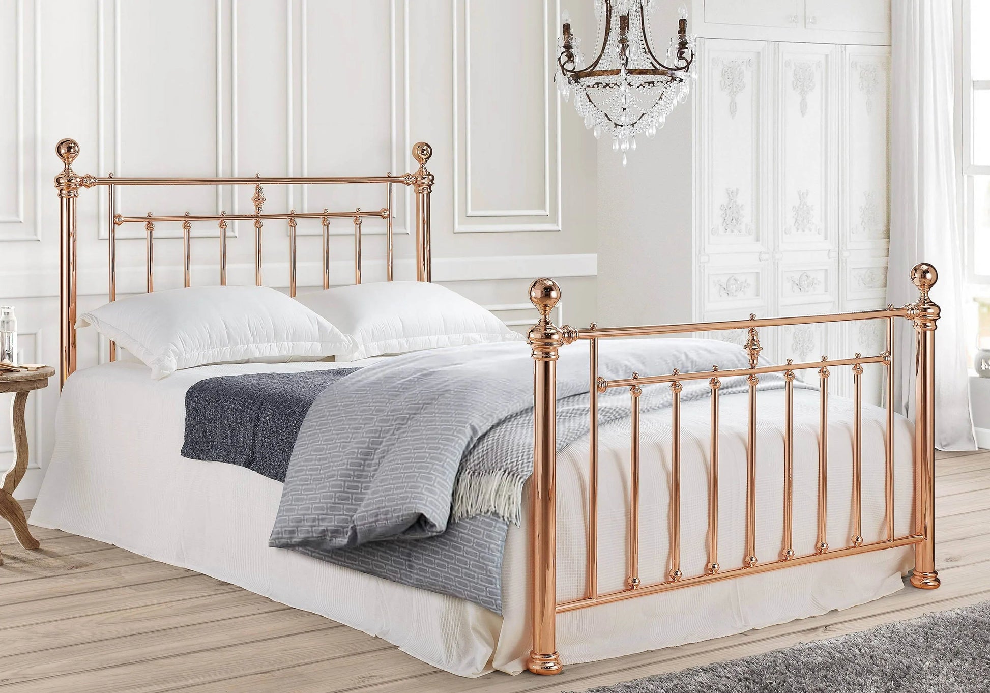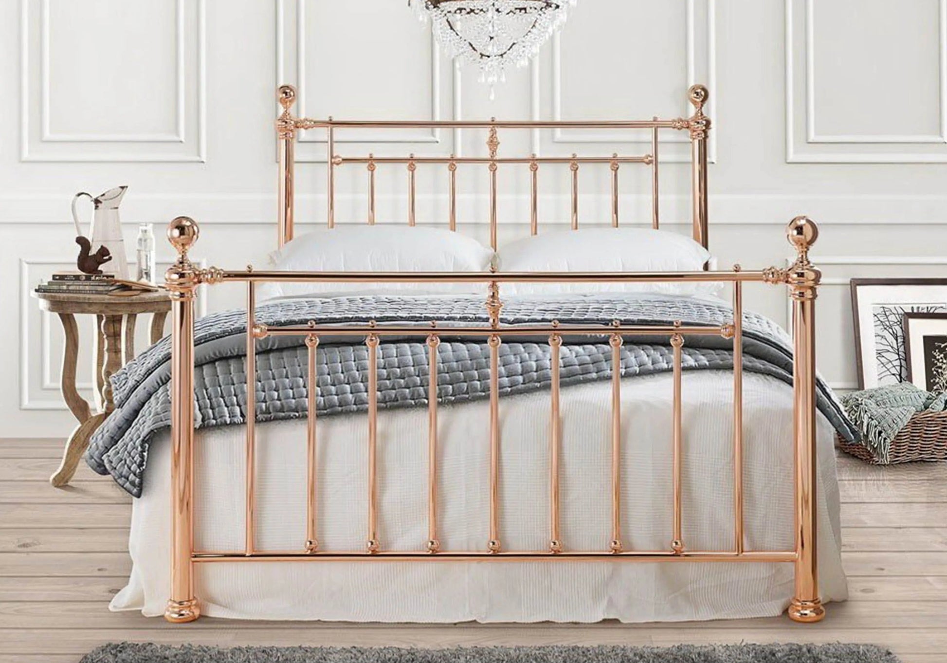Introducing the beautifully elegant Alexander Rose Gold Bed by Time Living. Designed to create a vintage or contemporary look to any bedroom, with a polished finished, which is available in three colours, Chrome, Black Nickel and Rose Gold. The Alexander Rose bed frame also features a sprung slatted base for extra comfort, and is designed to be a self supporting internal frame, which does not require any centre support legs.