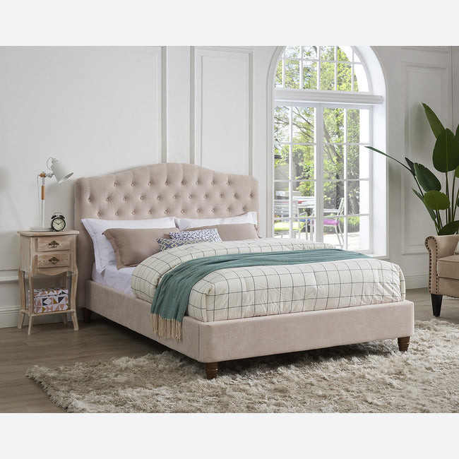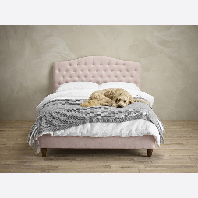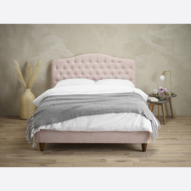 This pink velvet double bed sets an elegant tone to any bedroom by using its soft, undulating headboard. This Manufactured with a traditional design and using upholstered pink Chenille fabric or silver velvet, this design will look gorgeous against any décor or background.