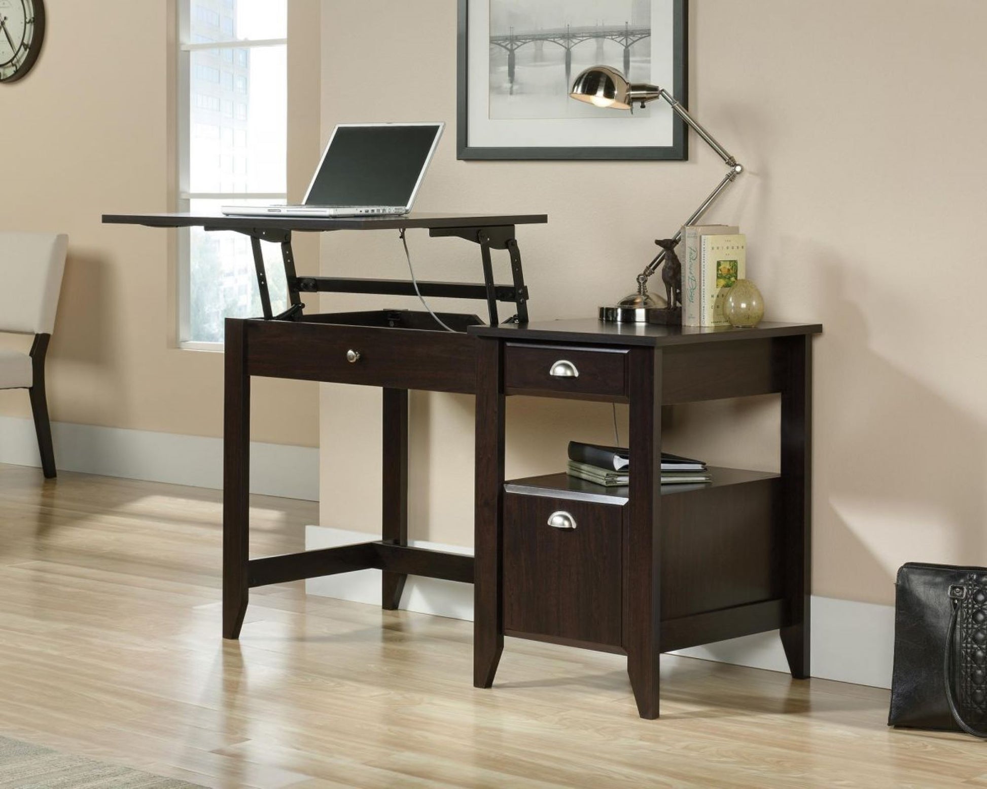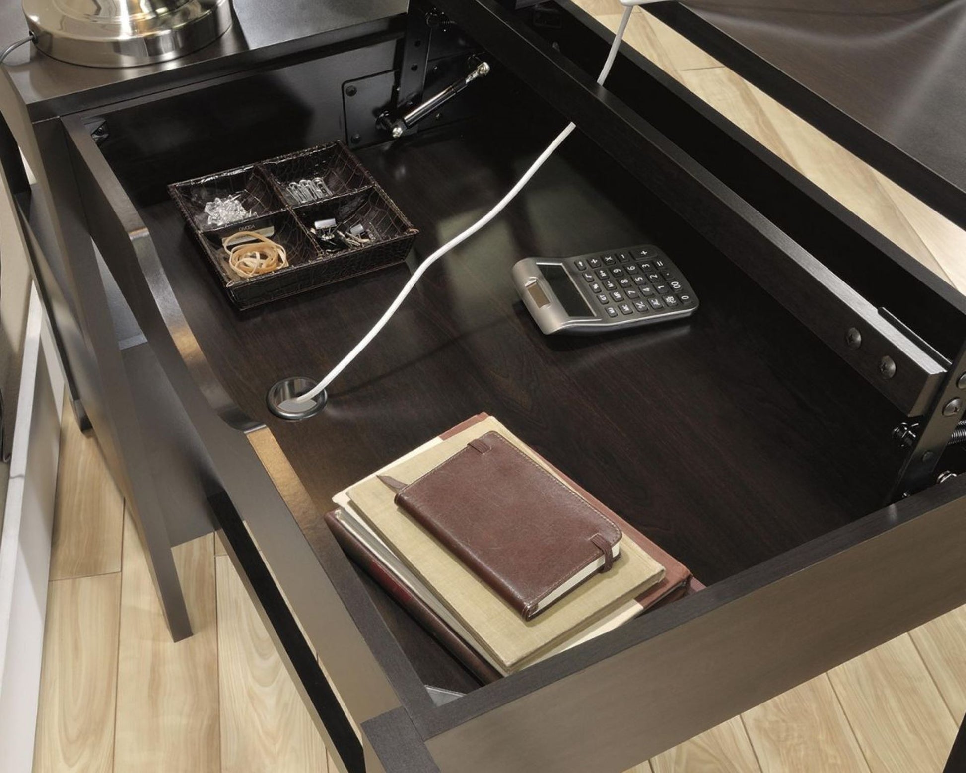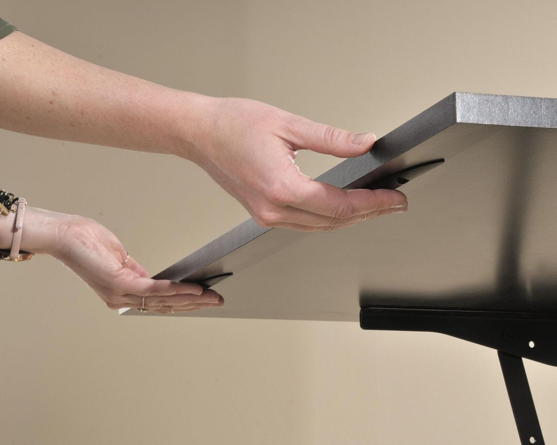 Left side of desktop lifts up and forward to create a versatile option to work sitting or standing