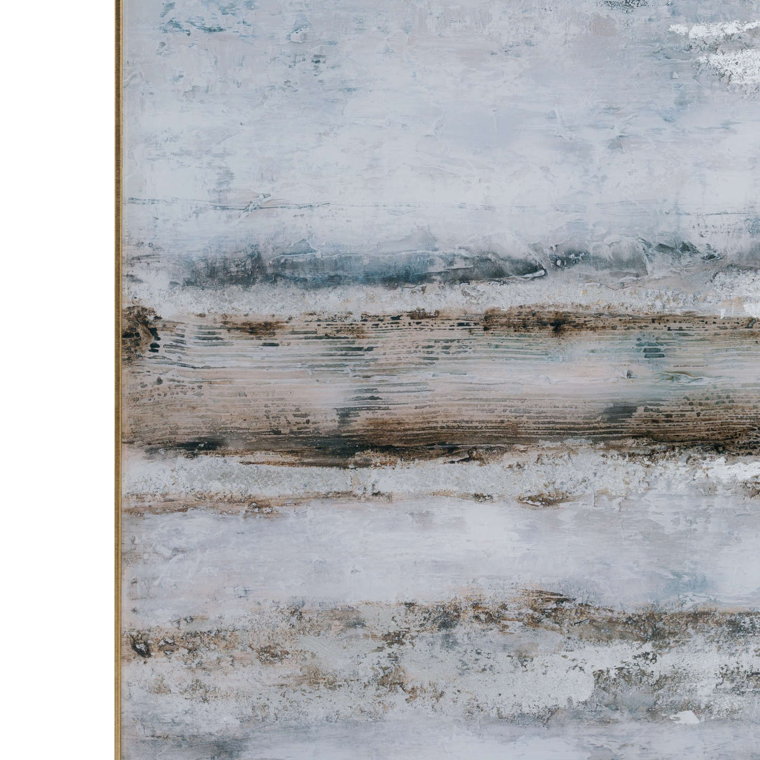This stunning piece of artwork is sure to make a statement within any interior. Featuring a mixture of neutral and stylish colours including grey, blue and Silver it creates a glamorous addition where ever it is placed. It is complete with a Silver frame, be sure to take a look at other versions.