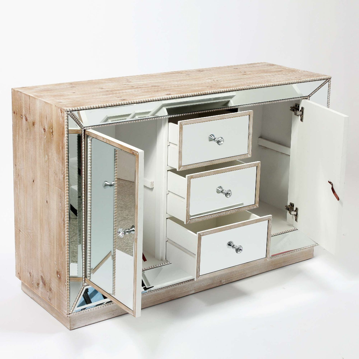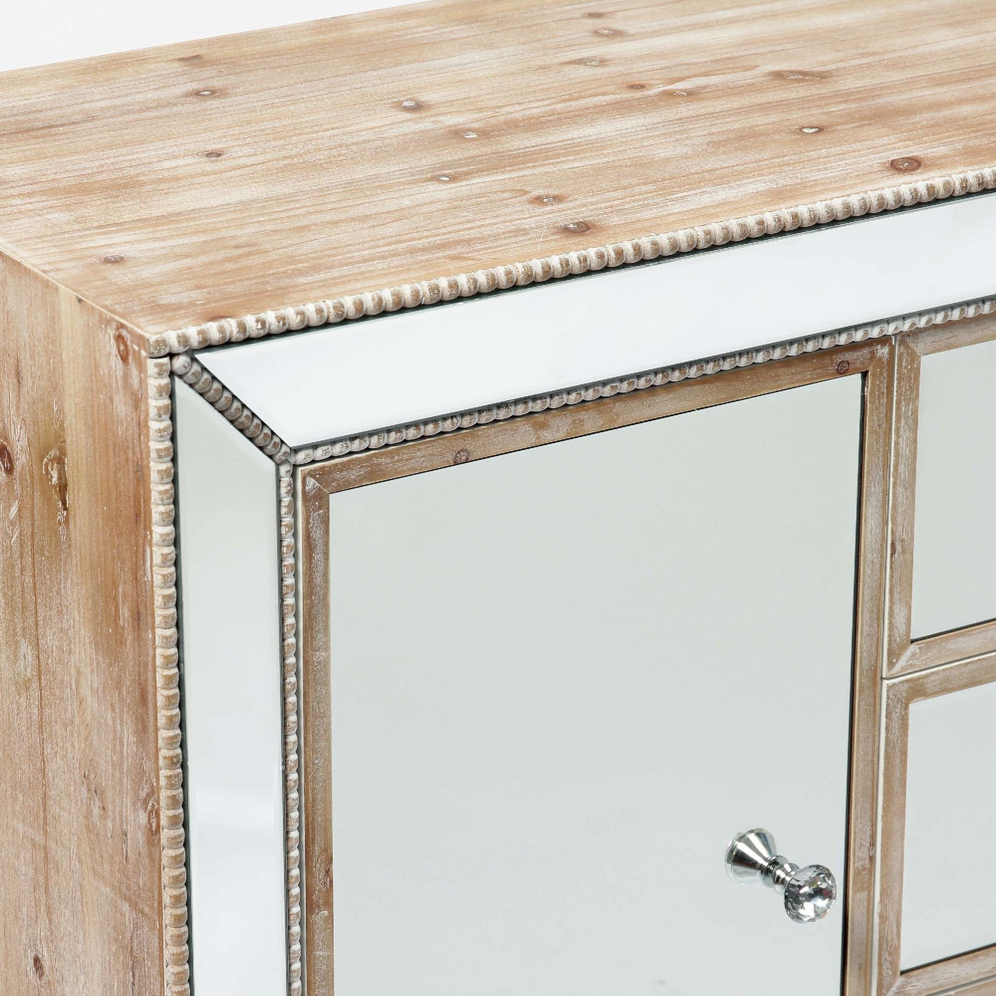 Beautifully designed sideboard with mirrored door, diamante effect handles and pearl effect edges. Give your home a stunning touch with this sideboard.