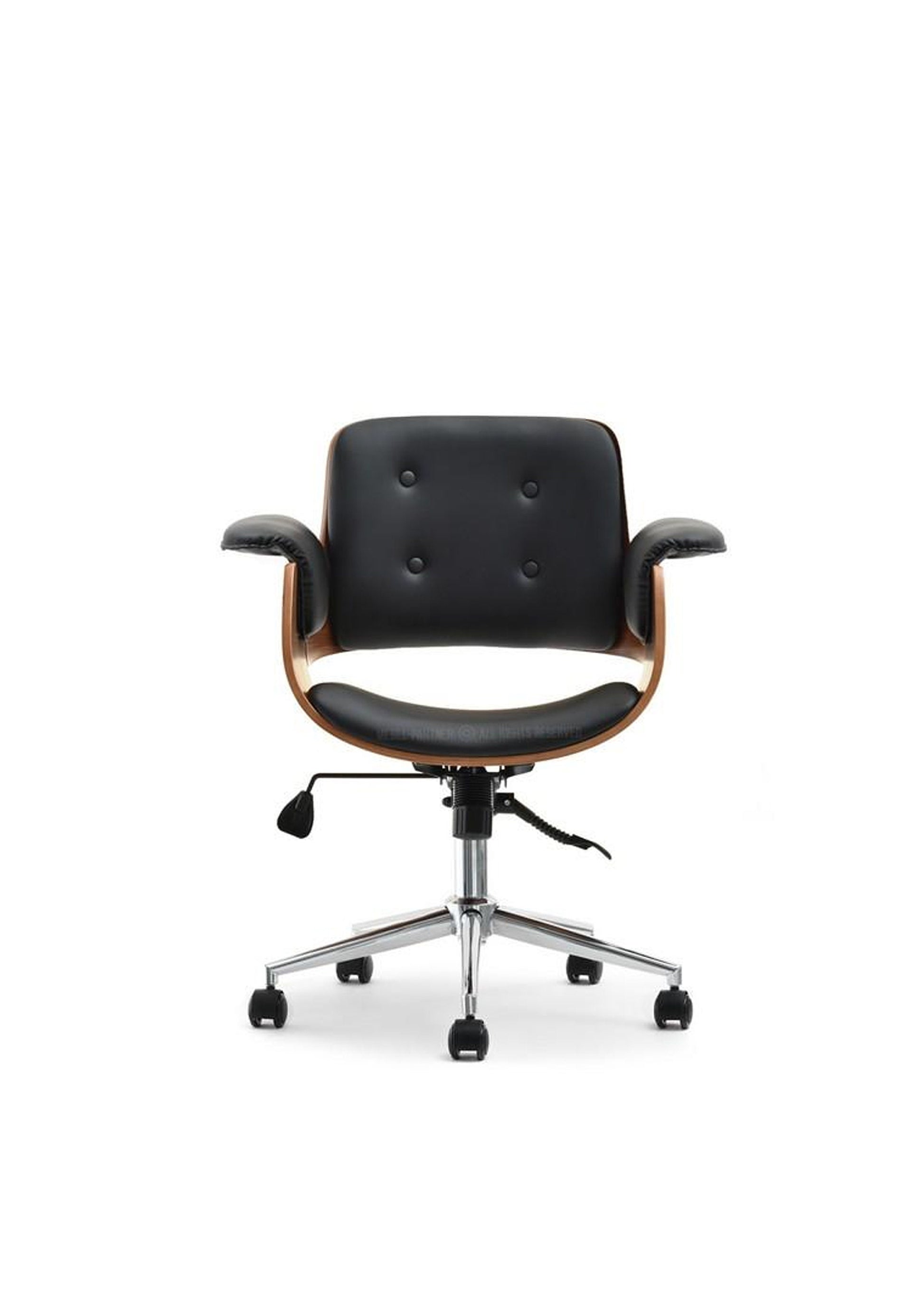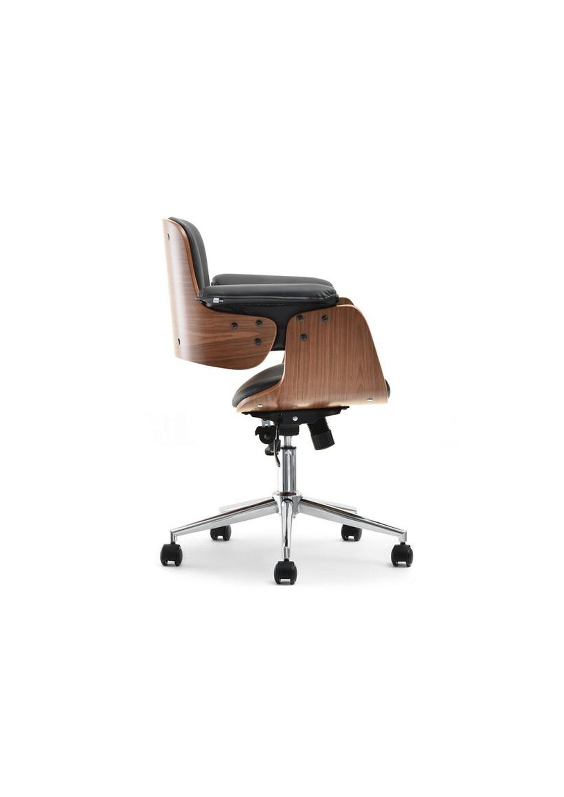 Retro Swivel Chair Modern Office Chair in bent wood and black faux leather